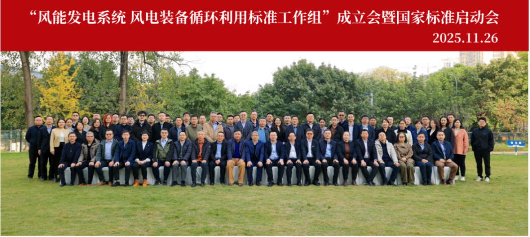 11月26日,由全国风力发电标准化技术委员会(以下简称“全国风标委”)主办,中国物资再生协会风光设备循环利用专业委员会(以下简称“风光专委会”)承办,中国水利电力物资集团有限公司、中车山东风电有限公司、中广核环境科技(深圳)有限责任公司、北京金风慧能技术有限公司协办的“风能发电系统 风电装备循环利用标准工作组”成立会暨国家标准启动会在重庆顺利召开。来自业主单位(大唐集团、三峡集团、华能集团、中广核、北京京能等)、整机商(金风科技、远景能源、运达能源、明阳智能、上海电气等)、检验检测机构(电科院、北京鉴衡、CQC等)、部件制造(中车永济、时代新材、重齿、洛轴、南高齿等)、回收相关机构与企业(清华苏州环境院、生态环境部固废管理技术中心、杰瑞新能源、重庆成飞、北京和能时代等)50余家单位的80多位专家参加了会议。
